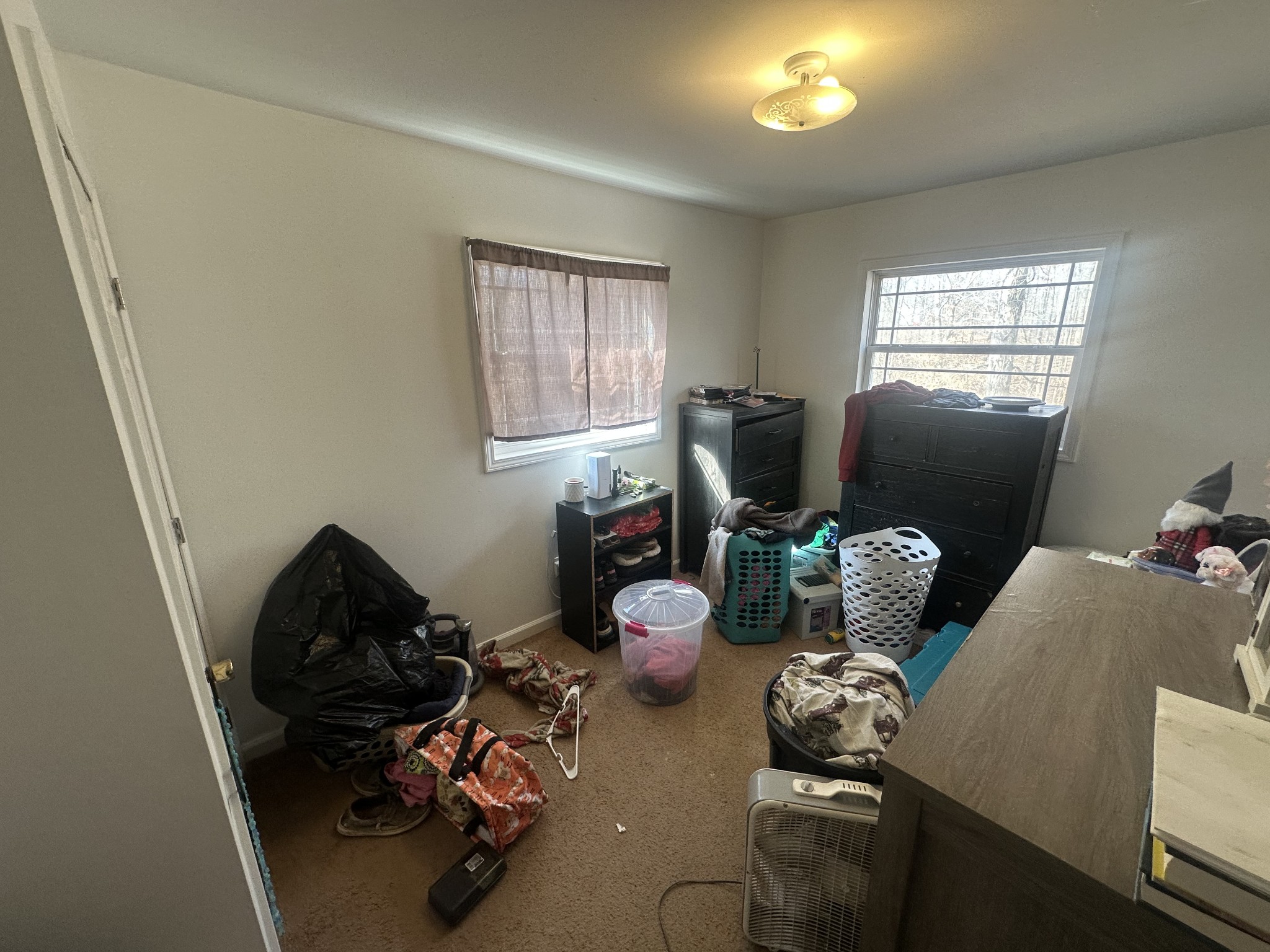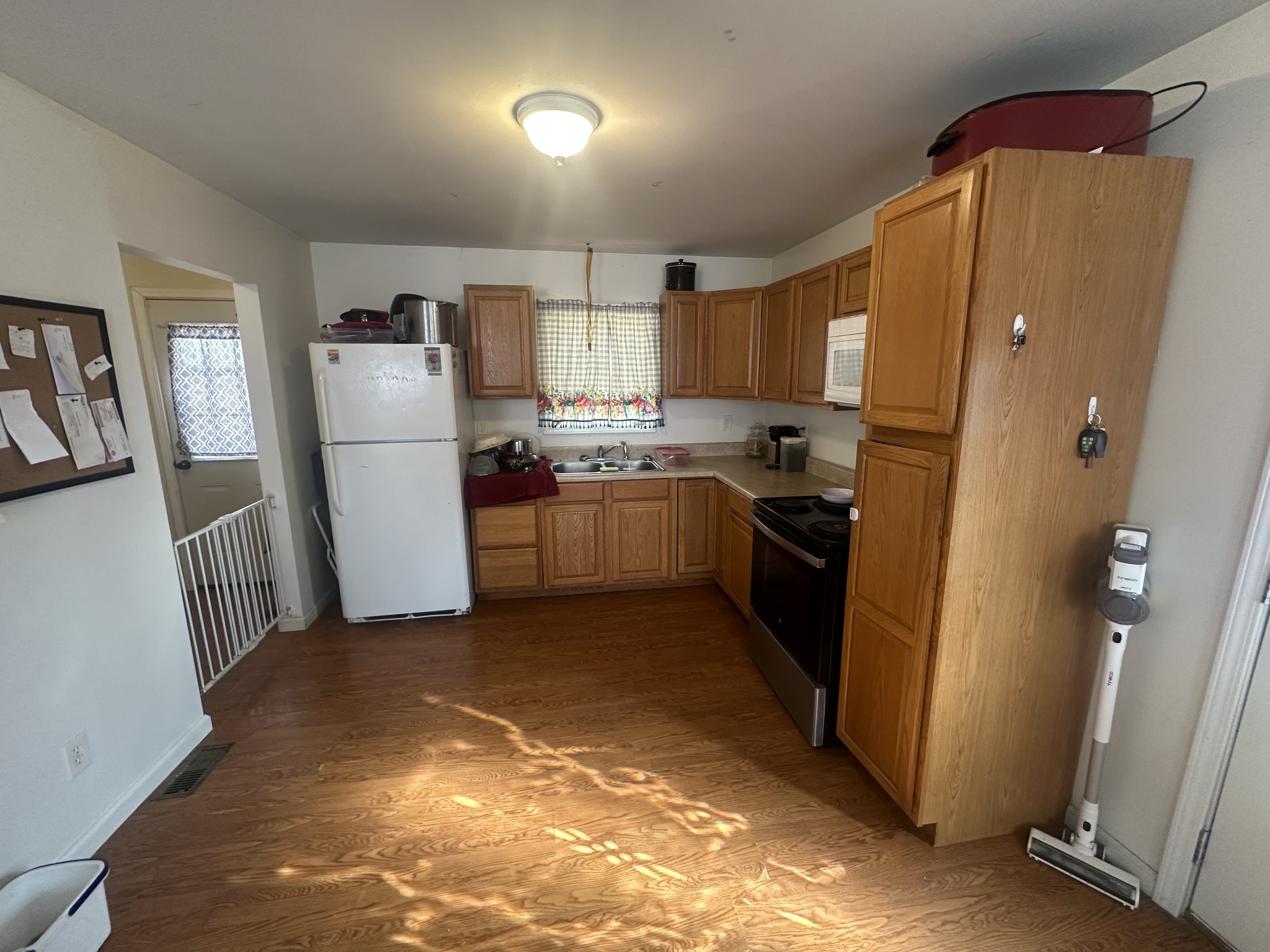 Private 2 bedroom, 1 bath home on 1.06 acres. Open living room and kitchen. Oven, microwave and water softener stay. Utility room. Metal roof and vinyl siding. Storage building on the property. One RV will be conveyed and will need repair. Affordable property with potential for a starter home, rental, or weekend getaway.